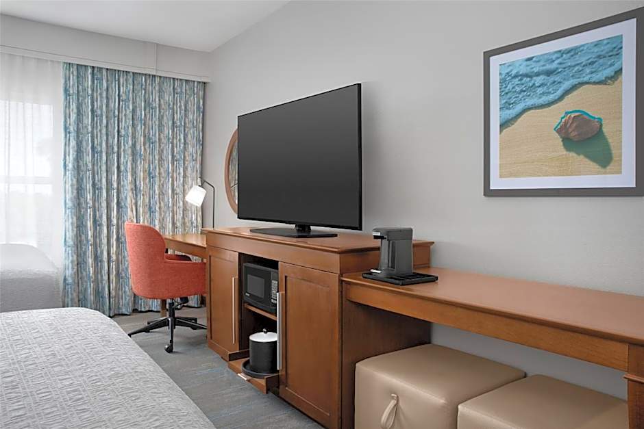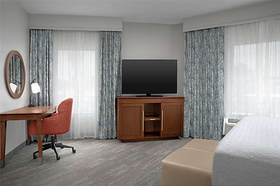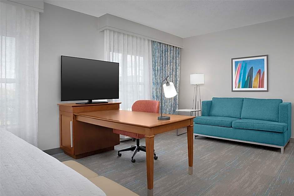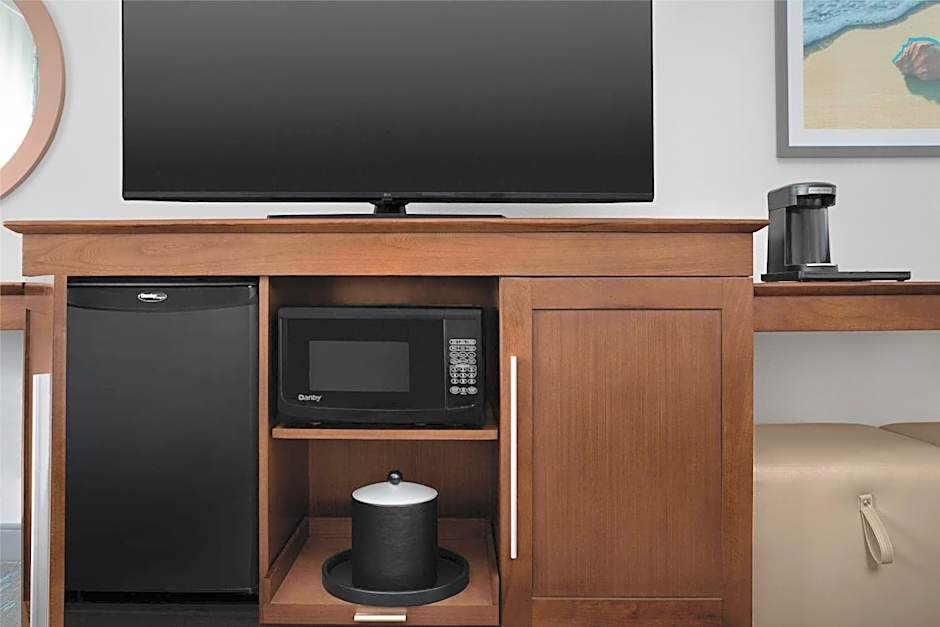 This spacious king studio offers an extended work space and seating area with a sofa bed. A microwave, small refrigerator, and coffee-making facilities are provided.
